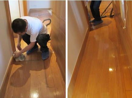 护理技术师配合高端木地板护理精油,为您的地板做最好的护理保养。